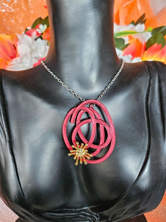 Collier avec sa spirale bordeaux De marque Ikita Neuf sans étiquette, jamais porté En acier inoxydable hypoallergenique haute qualité Ne noircit pas au fil du temps Ne rouille pas Bonne résistance au passage sous l eau Collier réglable (17/05/2025*689)