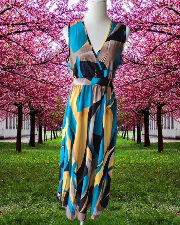 Robe longue multicolore, sans marque, taille M - photo numéro 1