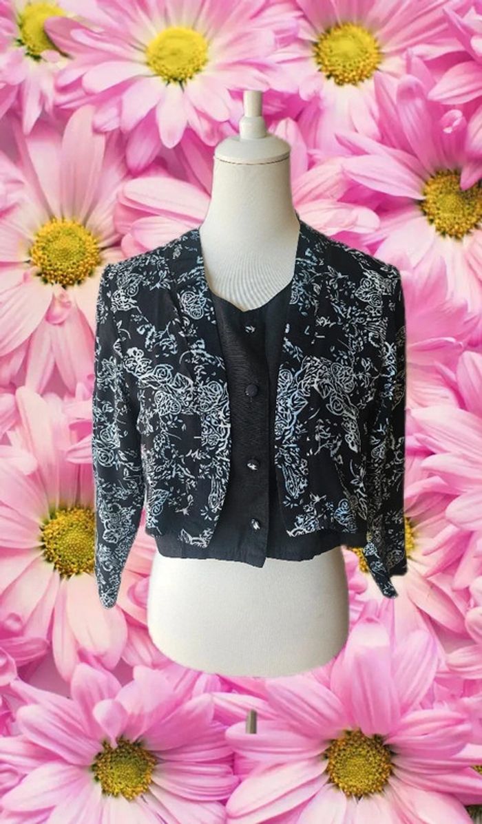 Blouse courte avec boléro a motifs intégré, sans marque, taille 38 - photo numéro 1