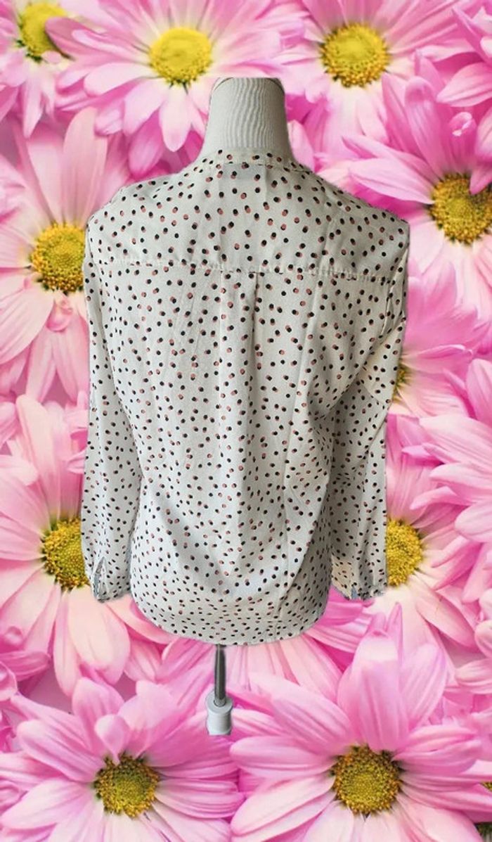 Blouse avec pois colorés De marque Yessica Taille 38 Tres bon état 100% polyester Aisselles à Aisselles: 47 cm Largeur bas de blouse: 46 cm Longueur: 65 cm (16/05/2025*670)