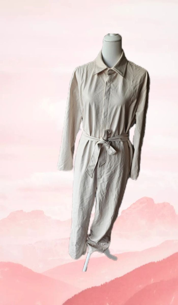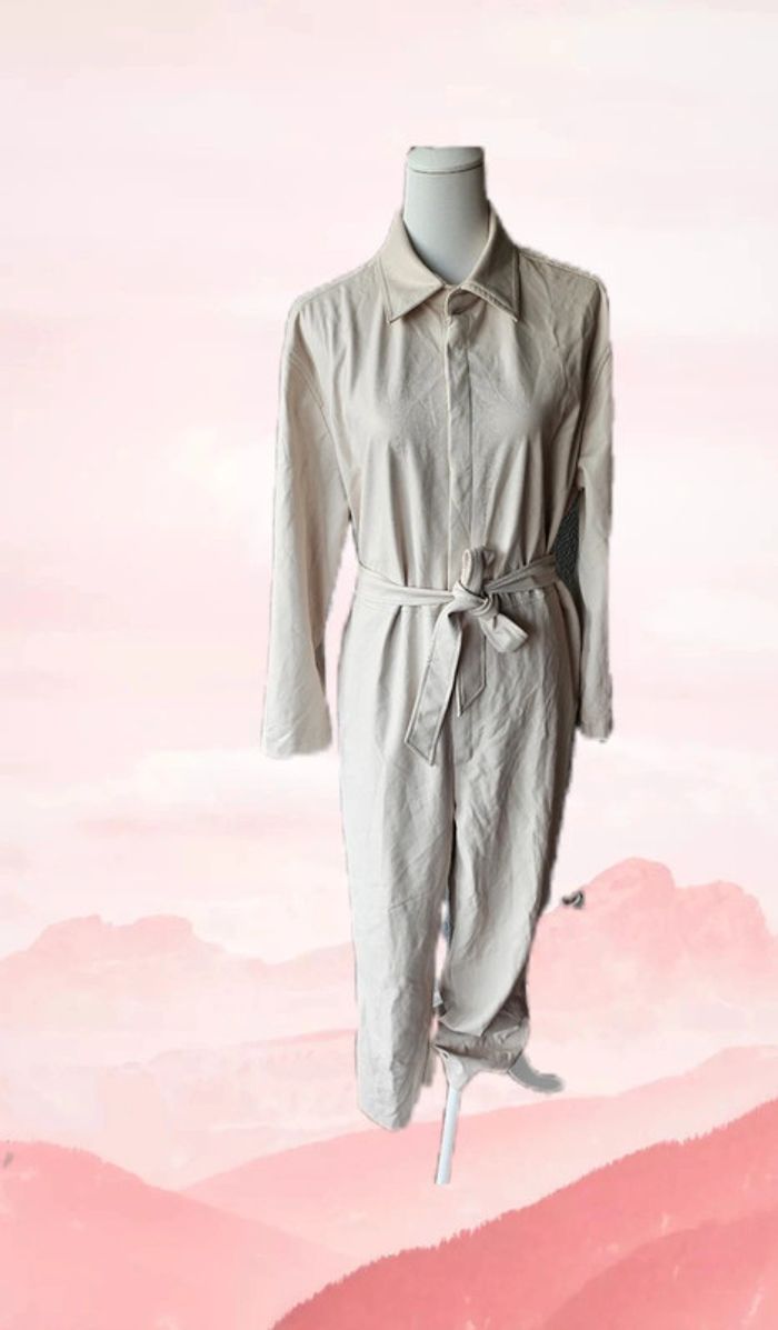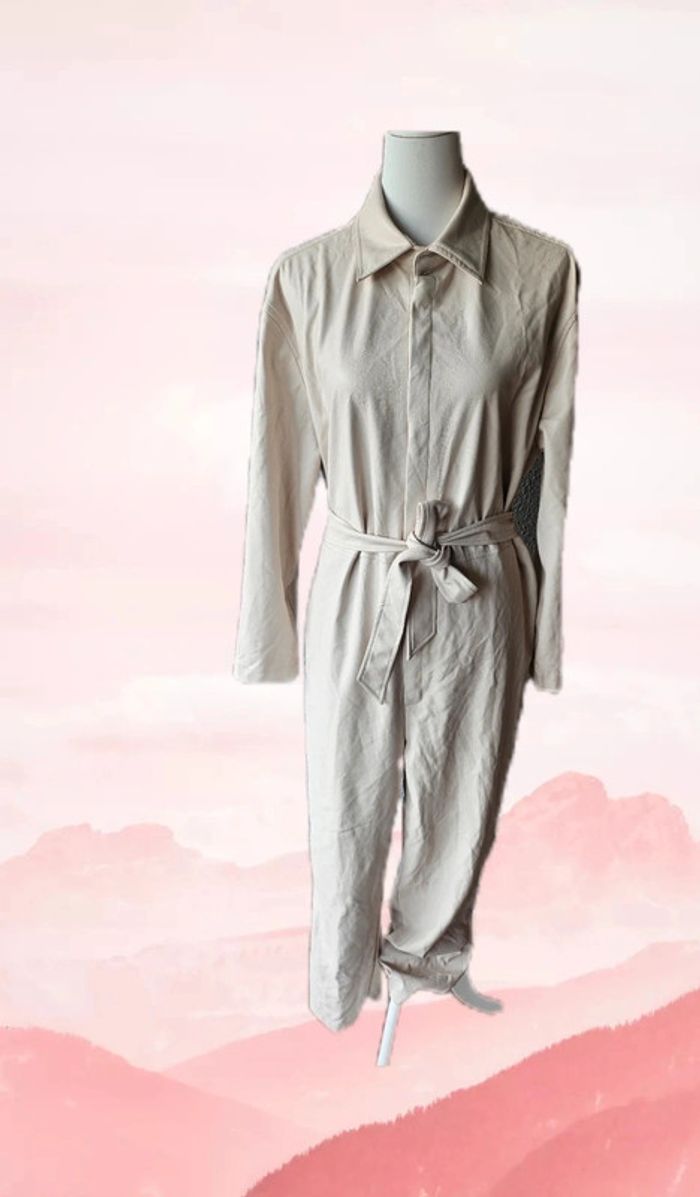 Combinaison crème en simili cuir avec ceinture, Camaïeu, taille 44 - photo numéro 1