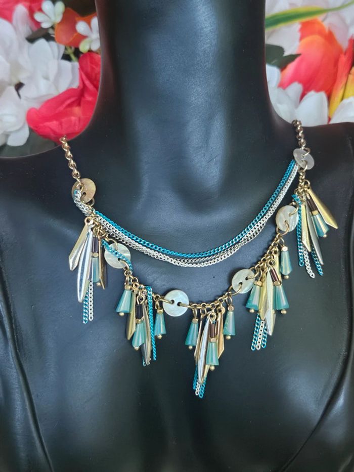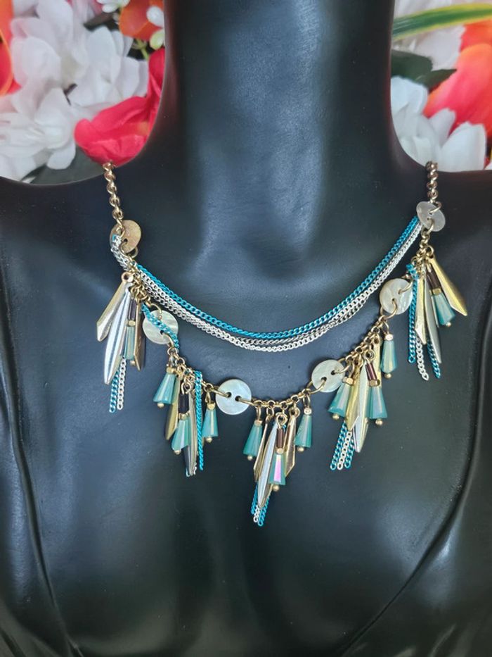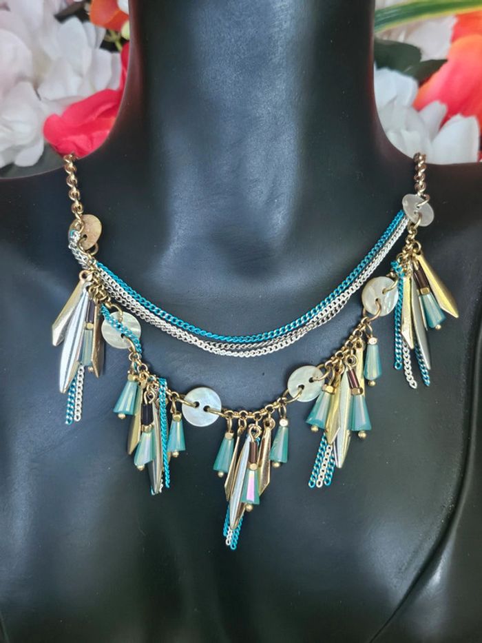 Collier avec chaines et breloques, ikita en acier inoxydable - photo numéro 1