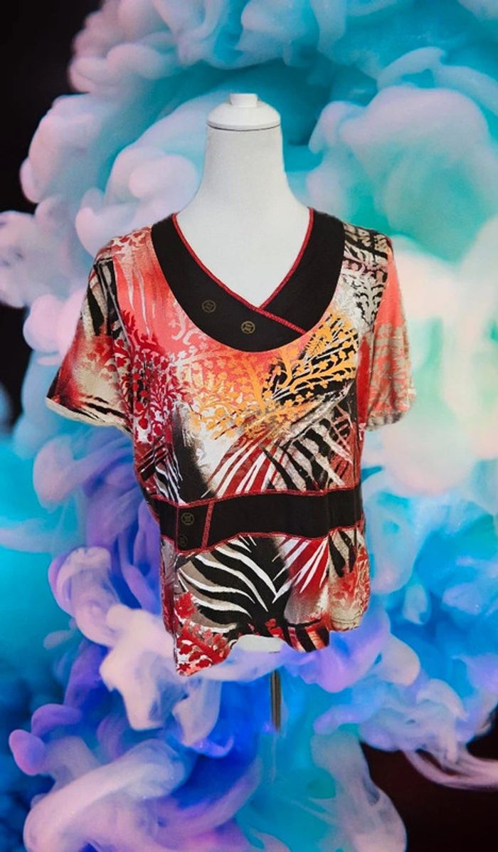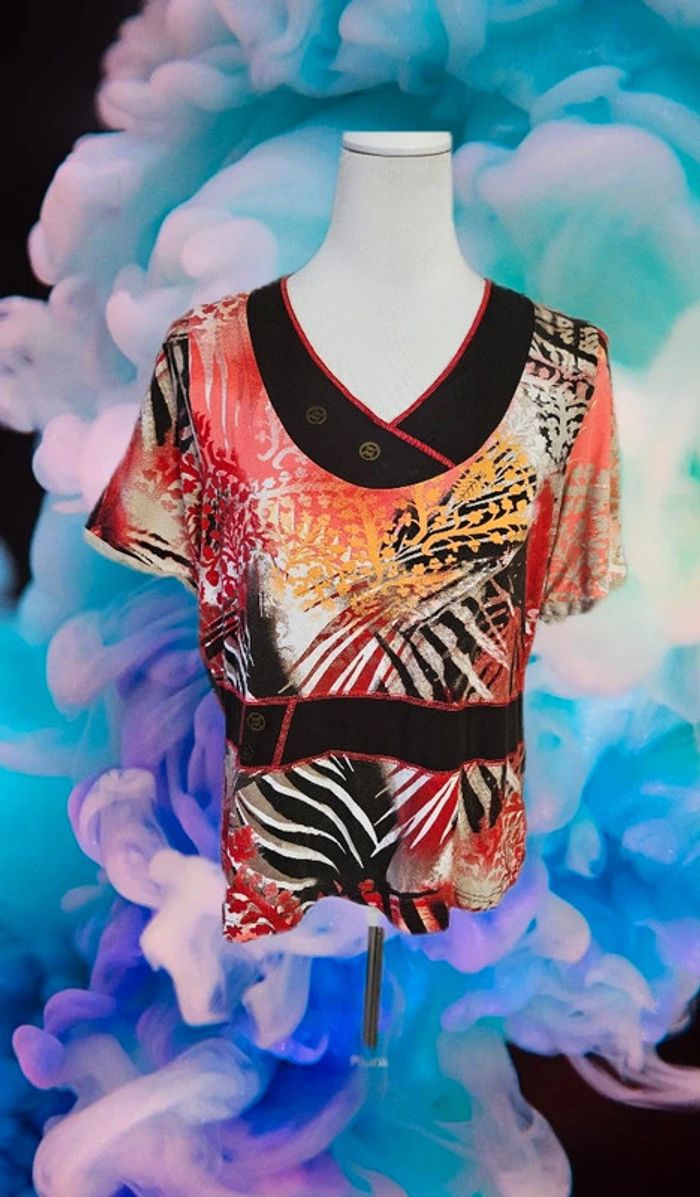 Tee shirt a motifs De marque Christine Laure Taille 42 Tres bon état Pas d étiquette de composition Aisselles à Aisselles: 50 cm Largeur bas de tee shirt: 50 cm Longueur: 60 cm (14/05/2025*657)
