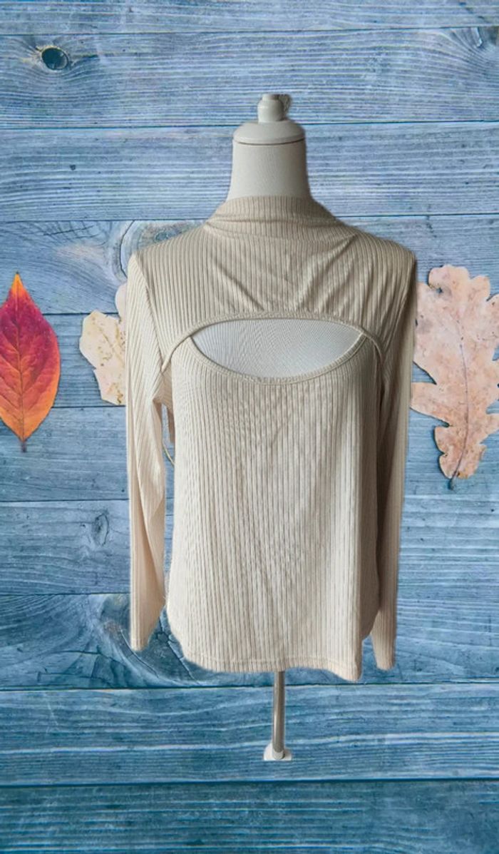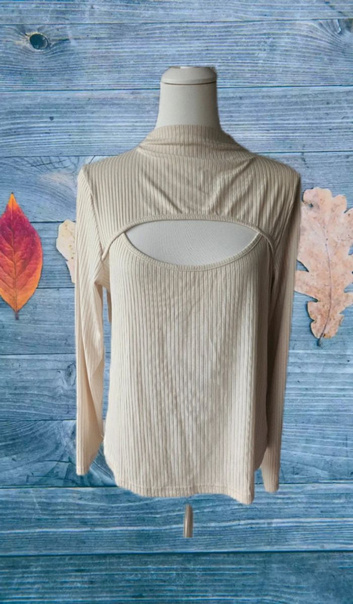 Blouse crème ouverte devant, sans marque, taille 42 - photo numéro 2