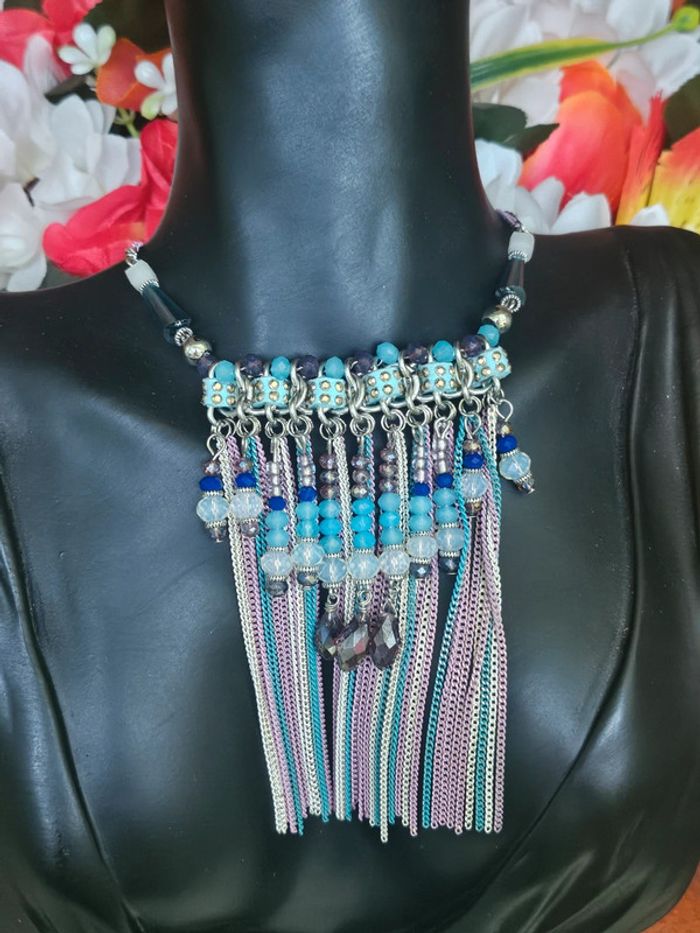 Sautoir avec chaînes et perles, ikita en acier inoxydable - photo numéro 3