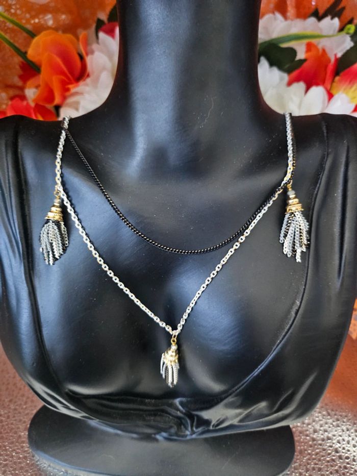 Collier avec ses pompons en chaînes Neuf sans étiquette, jamais porté De marque Ikita En acier inoxydable hypoallergenique haute qualité Ne noircit pas au fil du temps Ne rouille pas Bonne résistance au passage sous l eau Collier réglable (11/05/2025*617)