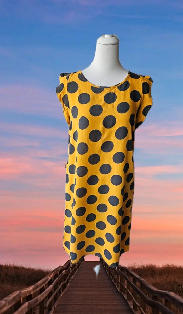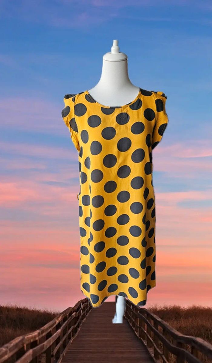 Robe longue moutarde a gros pois, taille unique - photo numéro 1