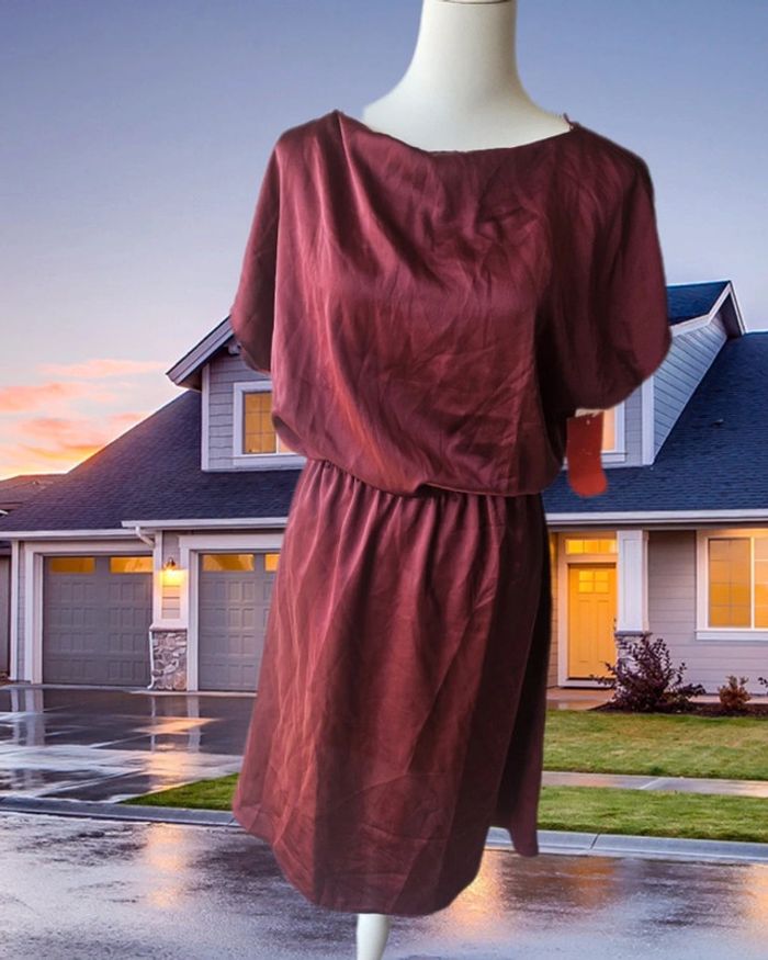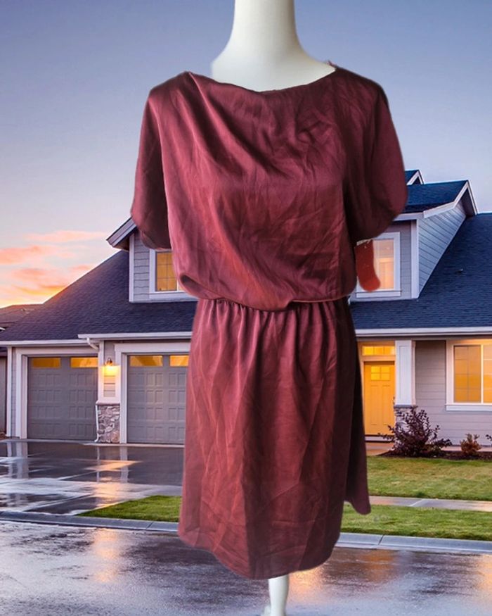 Robe satinée bordeaux avec sa brassière Neuve avec étiquette De marque Etam Taille S 100% polyester Aisselles à Aisselles: 52 cm Hanches: 32 cm Longueur: 109 cm Élastique à la taille (10/05/2025*596)