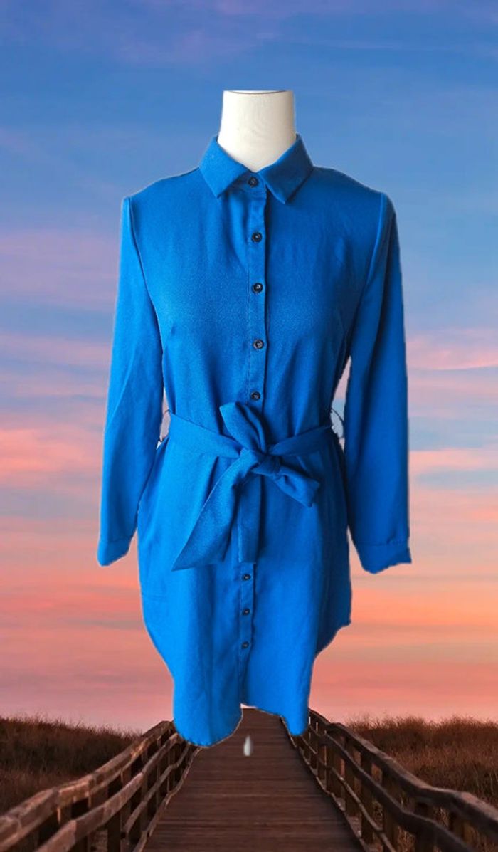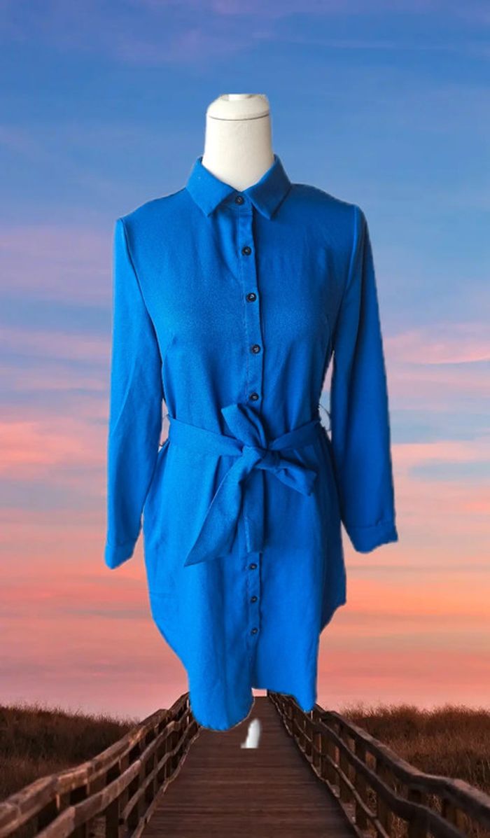 Robe chemise bleue avec sa ceinture, sans marque, taille 42 - photo numéro 1