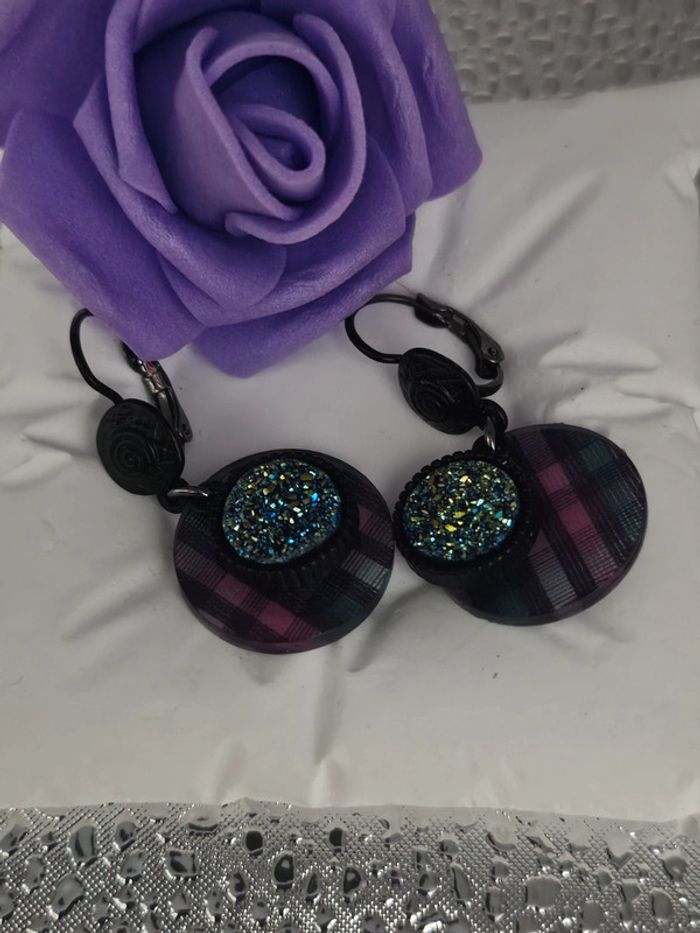 Boucles d oreilles dormeuses avec pastilles pailletées, ikita, en acier inoxydable - photo numéro 3