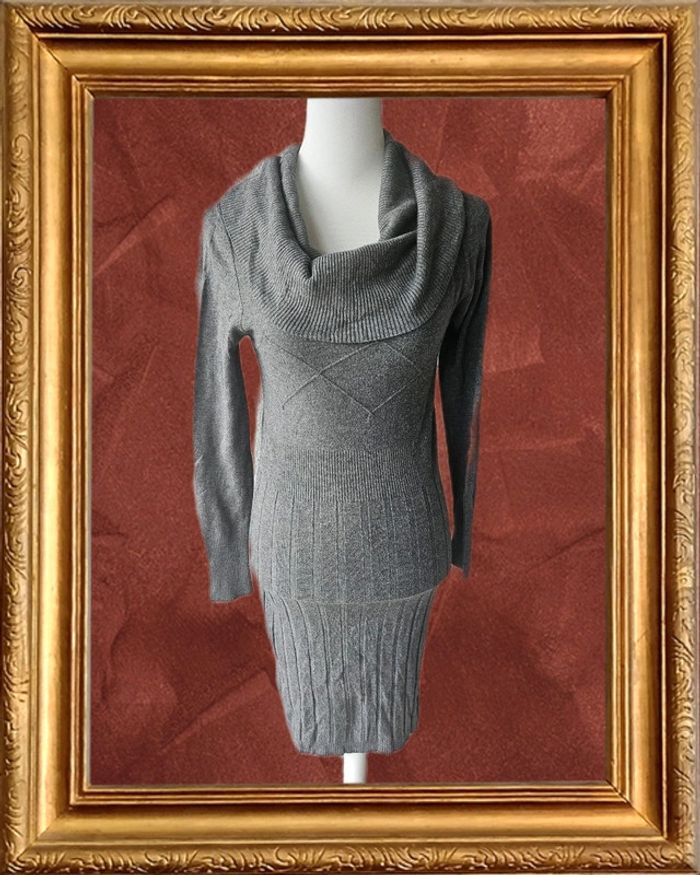 Robe longue pull grise avec col roulé, sans marque, taille 38/40 - photo numéro 1