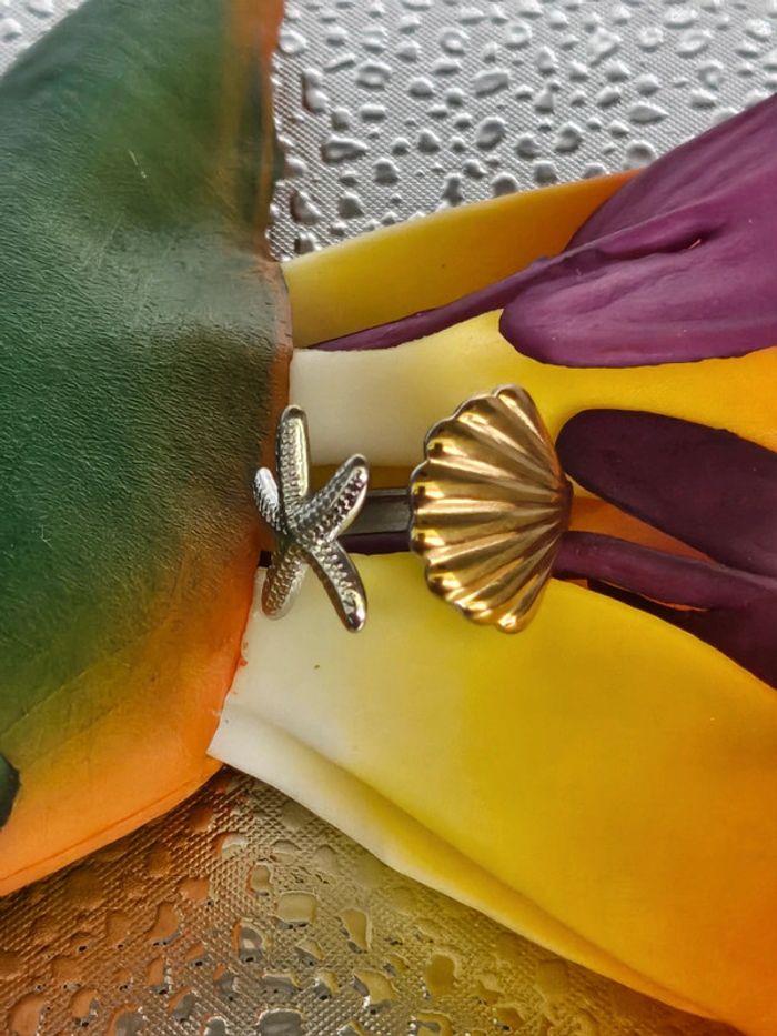 Bague étoile de mer et coquillage bicolore en acier inoxydable - photo numéro 2