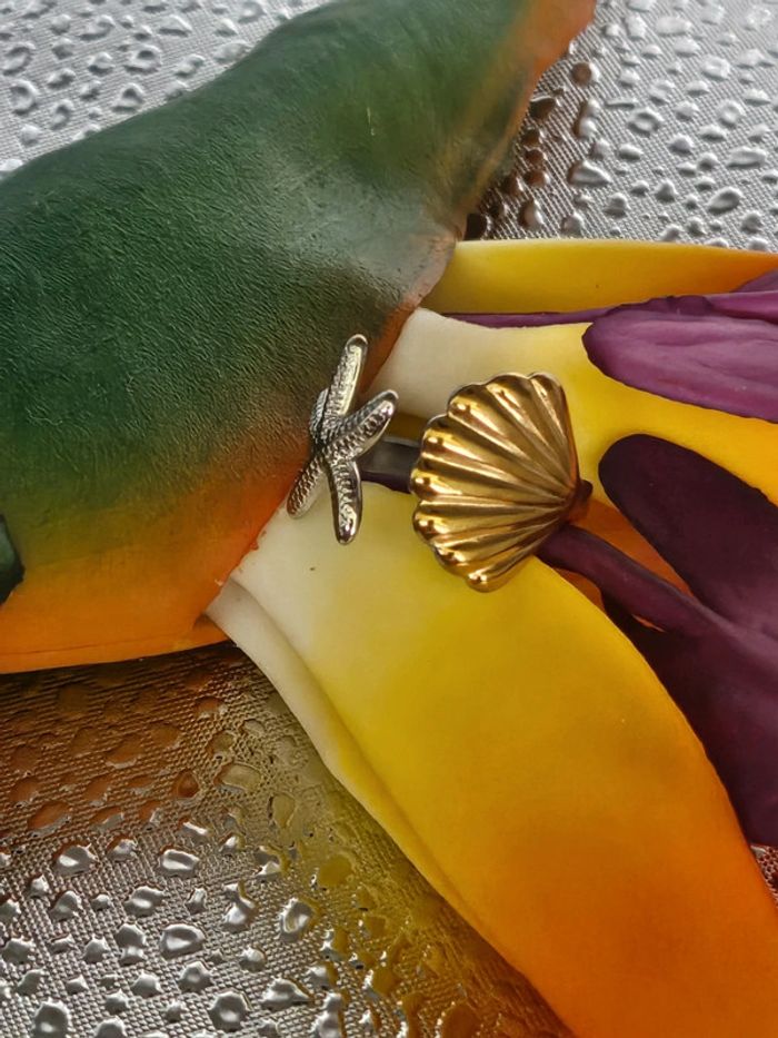 Bague étoile de mer et coquillage bicolore en acier inoxydable - photo numéro 1