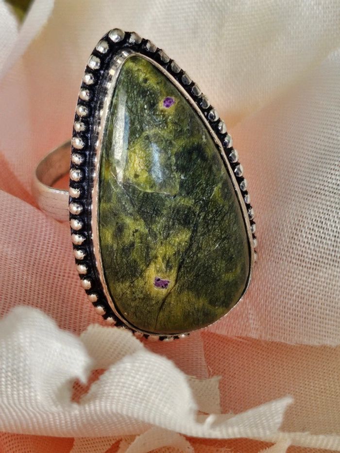 Bague en argent sterling 925 avec sa pierre jaspe stichtite - photo numéro 1