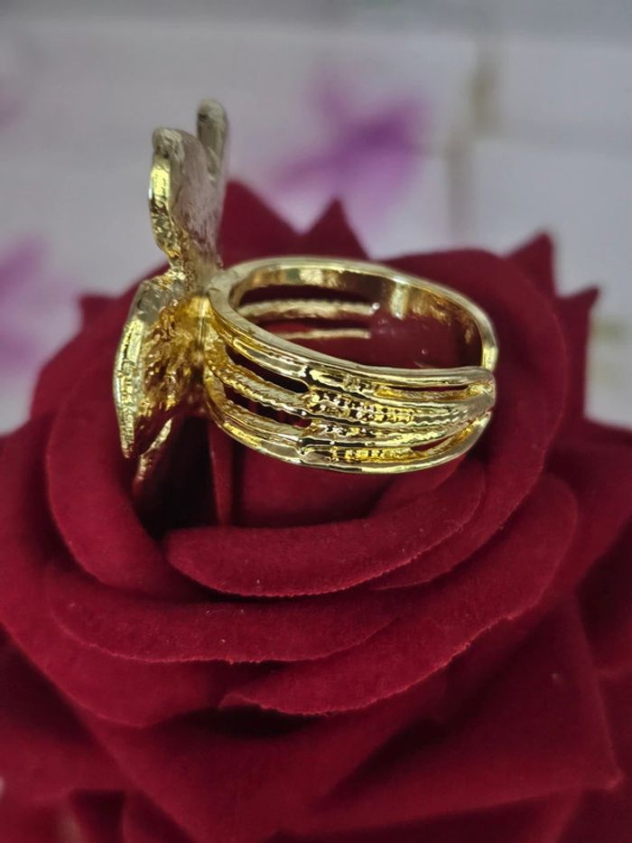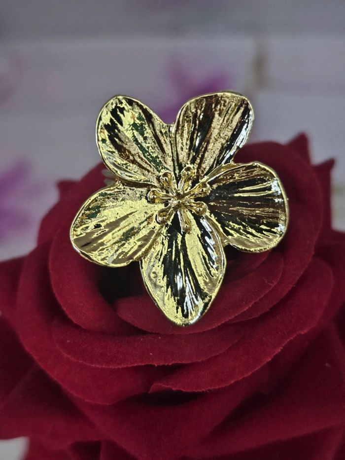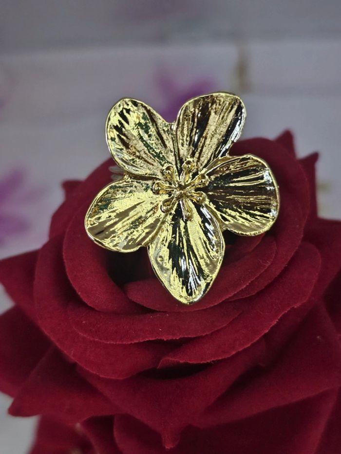 Bague fleur doree ajustable en acier inoxydable - photo numéro 1