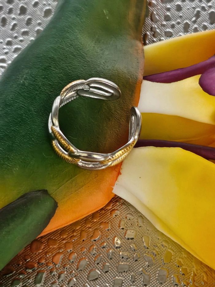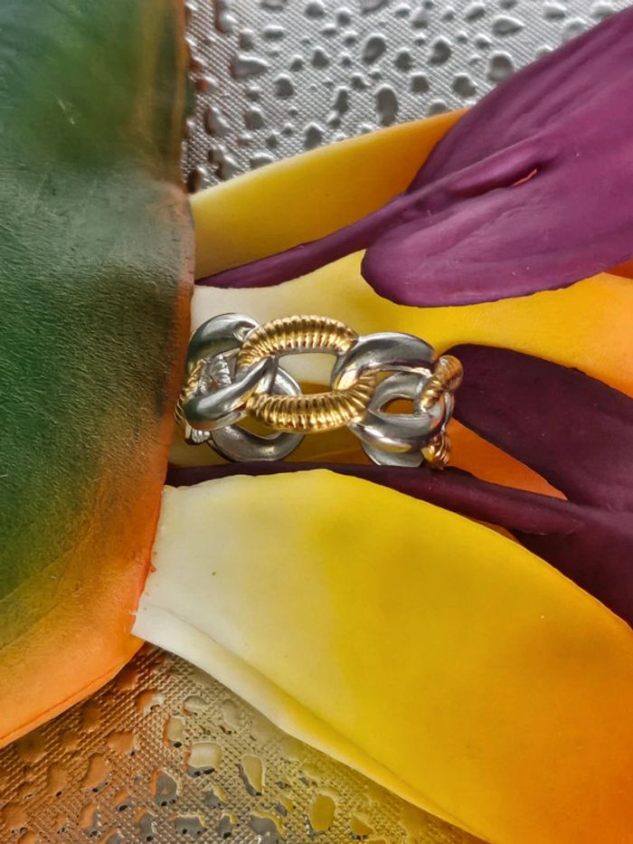 Bague avec maillons bicolore en acier inoxydable - photo numéro 1