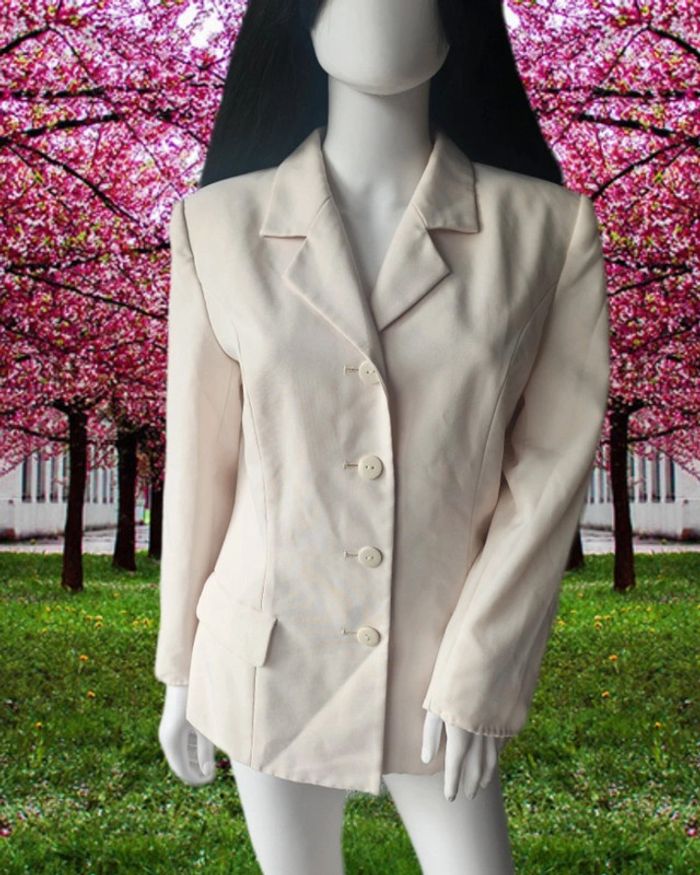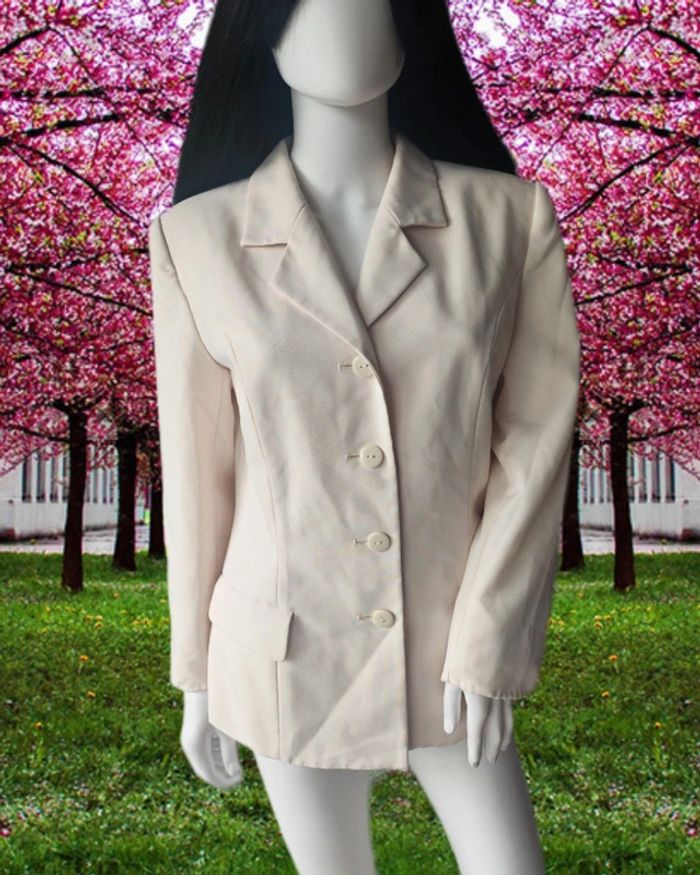 Blazer crème, sans marque, taille 42, épaulettes et fausses poches