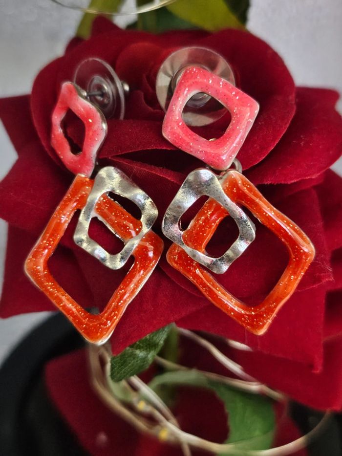 Boucles d oreilles triples losanges pailletés, ikita en acier inoxydable