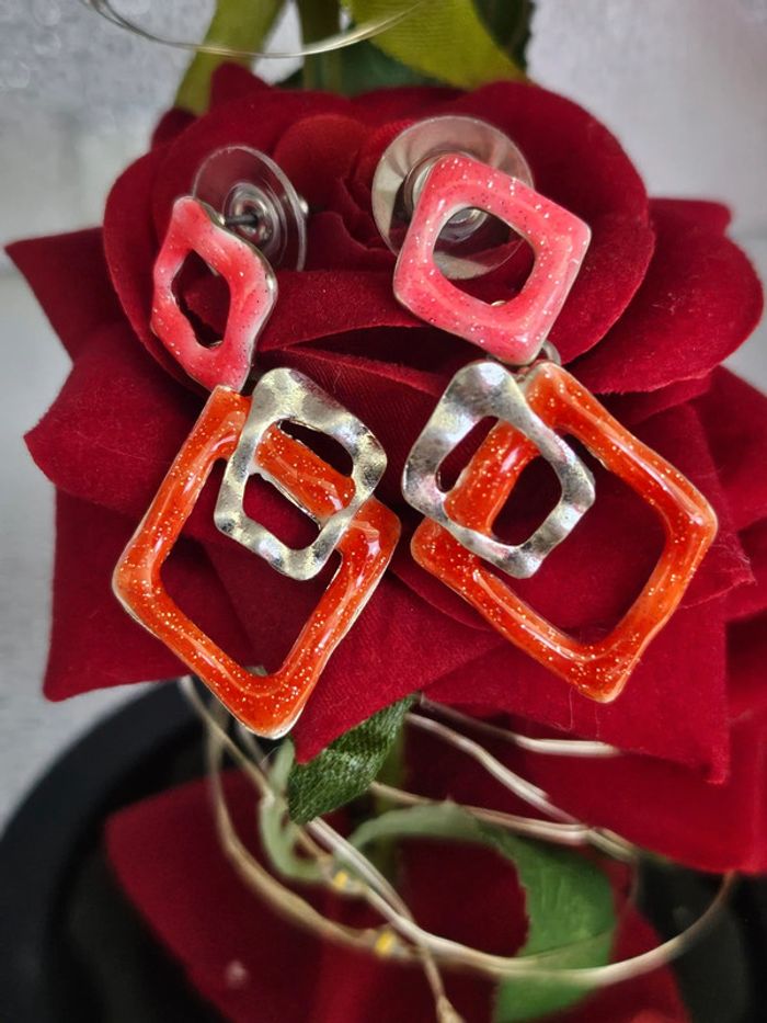 Boucles d oreilles triples losanges pailletés, ikita en acier inoxydable - photo numéro 3