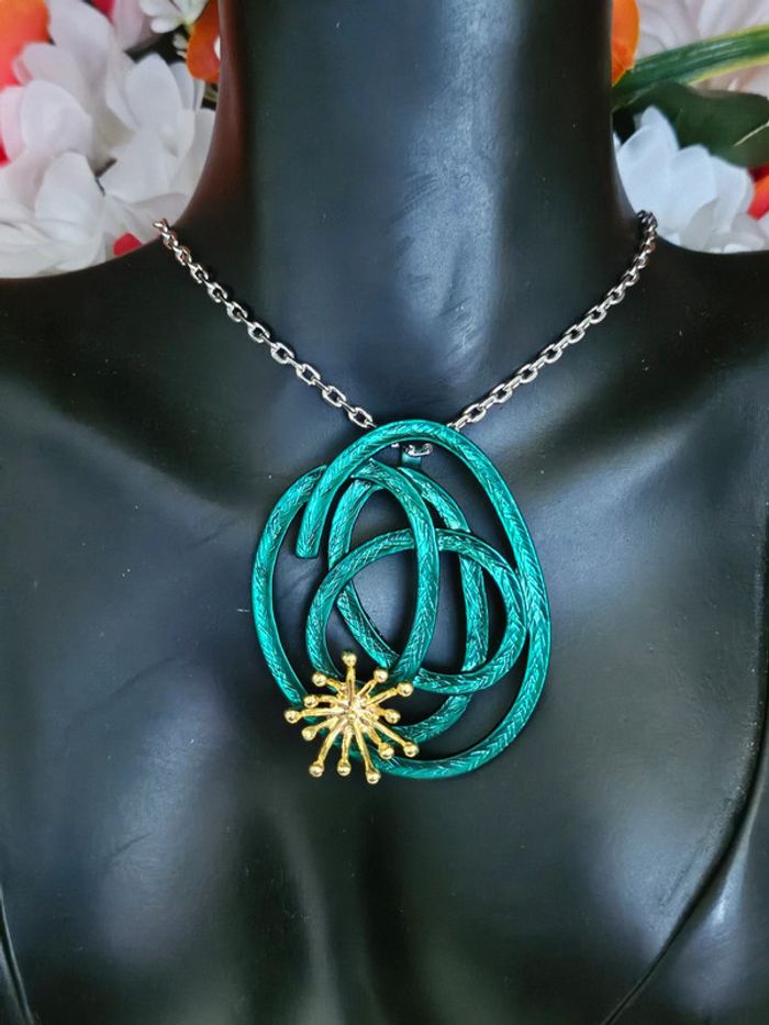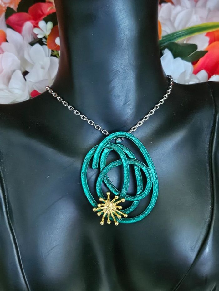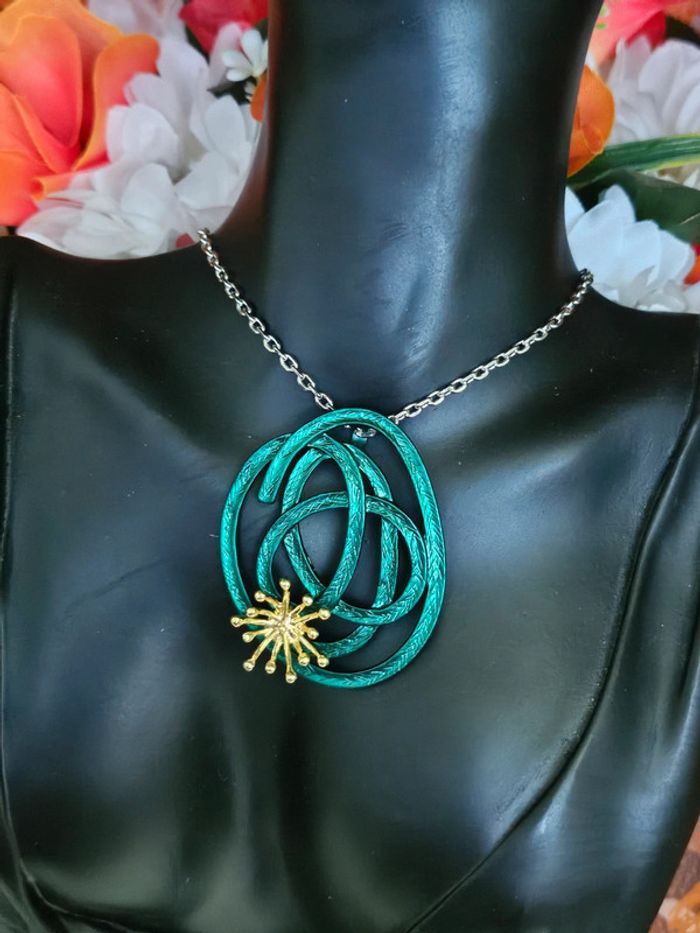 Collier avec son pendentif vert en spirale Neuf sans étiquette, jamais porté De marque Ikita En acier inoxydable hypoallergenique haute qualité Ne noircit pas au fil du temps Ne rouille pas Bonne résistance au passage sous l eau Collier réglable (08/05/2025*574)
