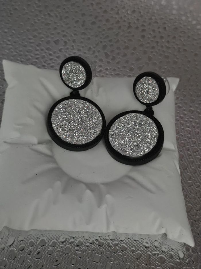 Boucles d oreilles pailletées argentees Neuves sans étiquette, jamais portées De marque Ikita En acier inoxydable hypoallergenique haute qualité Ne noircit pas au fil du temps Ne rouille pas Bonne résistance au passage sous l eau Pour oreilles percées (06/05/2025*572)