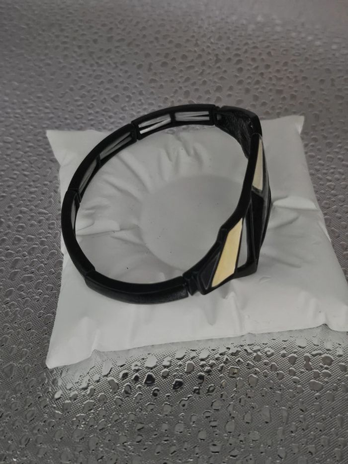 Bracelet avec forme bicolore Neuf sans étiquette, jamais porté De marque Ikita En acier inoxydable hypoallergenique haute qualité Ne noircit pas au fil du temps Ne rouille pas Bonne résistance au passage sous l eau Taille élastique (06/05/2025*571)