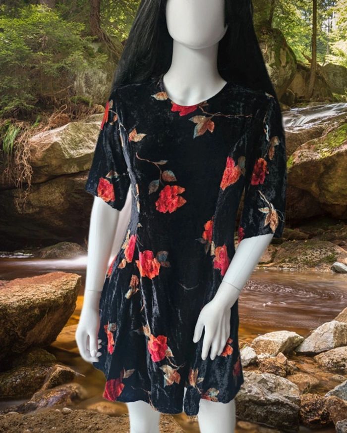 Robe en velours avec ses fleurs, taille 40 - photo numéro 3