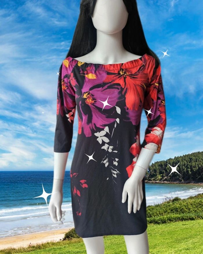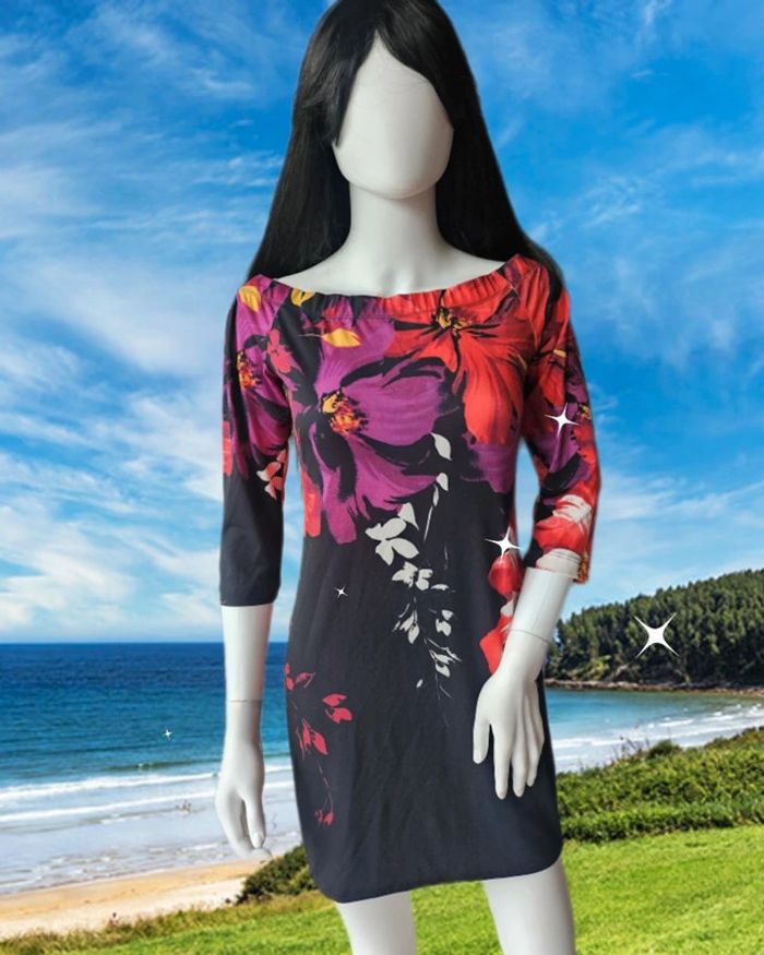 Robe satinée fleurie multicolore De marque bodyflirt Taille 38/40 Très bon état Pas d étiquette de composition Aisselles à Aisselles: 43 cm Hanches: 41 cm Longueur: 80 cm Élastique au col (06/05/2025*564)