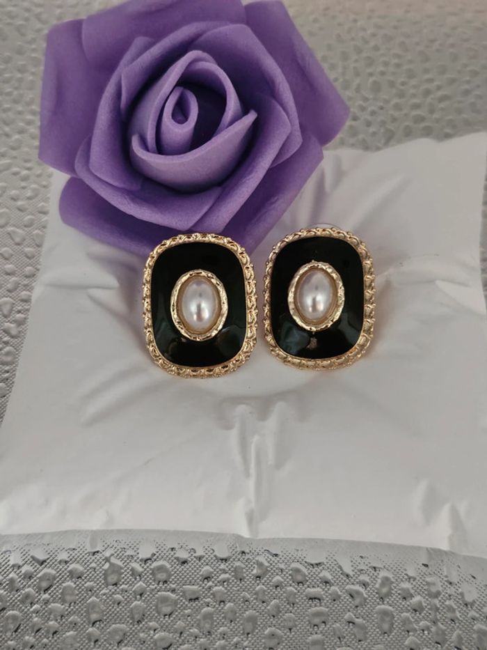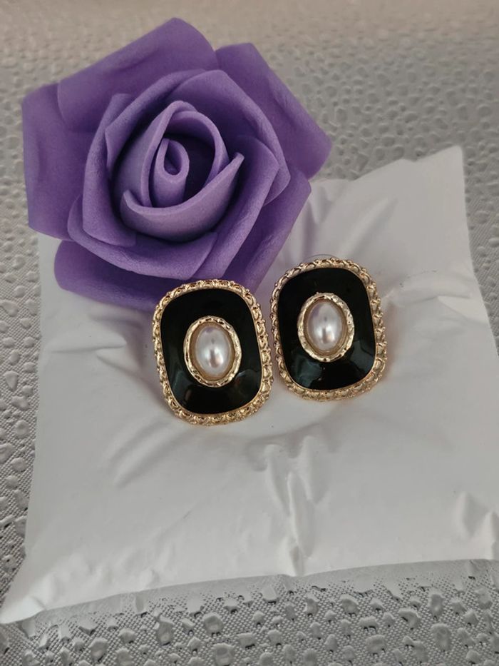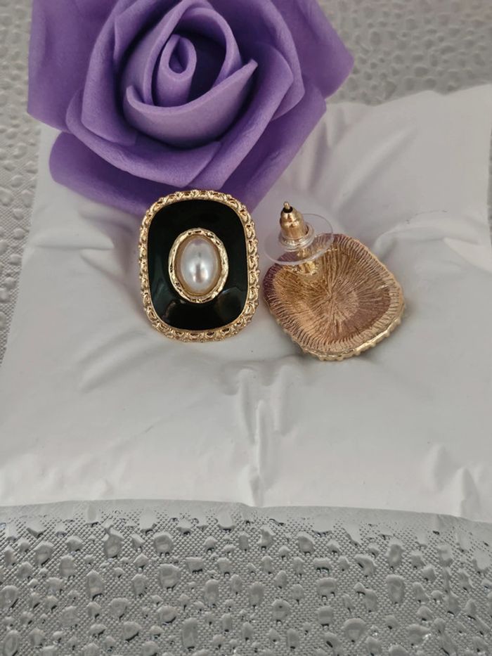 Boucles d'oreilles noires/dorées avec perles d eau douce Neuves sans étiquette, jamais portées De marque Aihhq En acier inoxydable hypoallergenique haute qualité Ne noircit pas au fil du temps Ne rouille pas Bonne résistance au passage sous l eau Pour oreilles percées (06/05/2025*562)