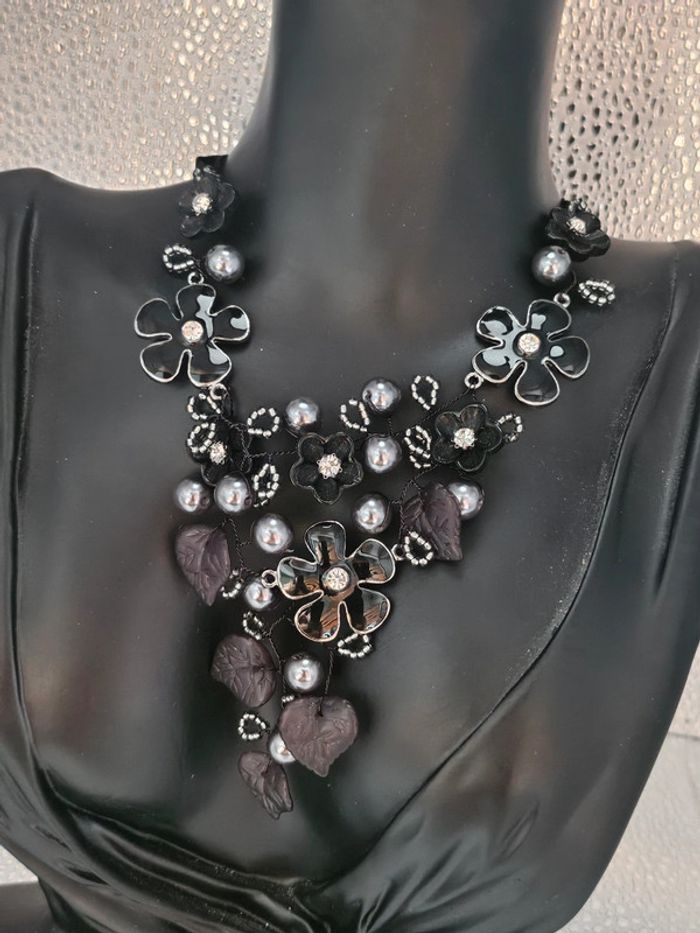 Collier avec fleurs, feuilles et perles Neuf sans étiquette, jamais porté De marque Ikita En acier inoxydable hypoallergenique haute qualité Ne noircit pas au fil du temps Ne rouille pas Bonne résistance au passage sous l eau Collier réglable (06/05/2025*561)