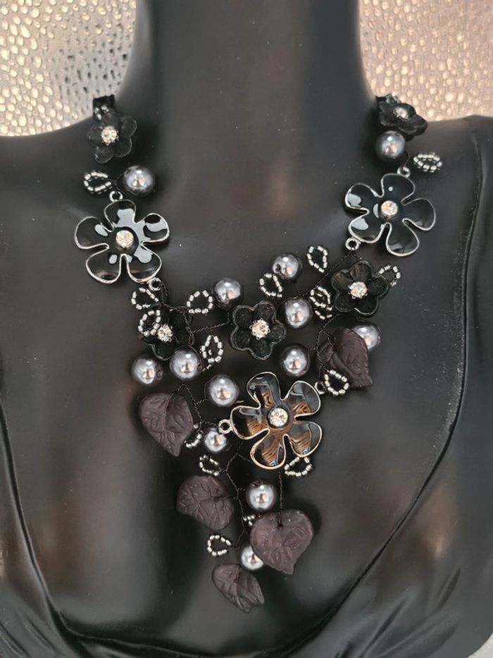 Collier avec ses fleurs, feuilles et perles, ikita en acier inoxydable - photo numéro 3
