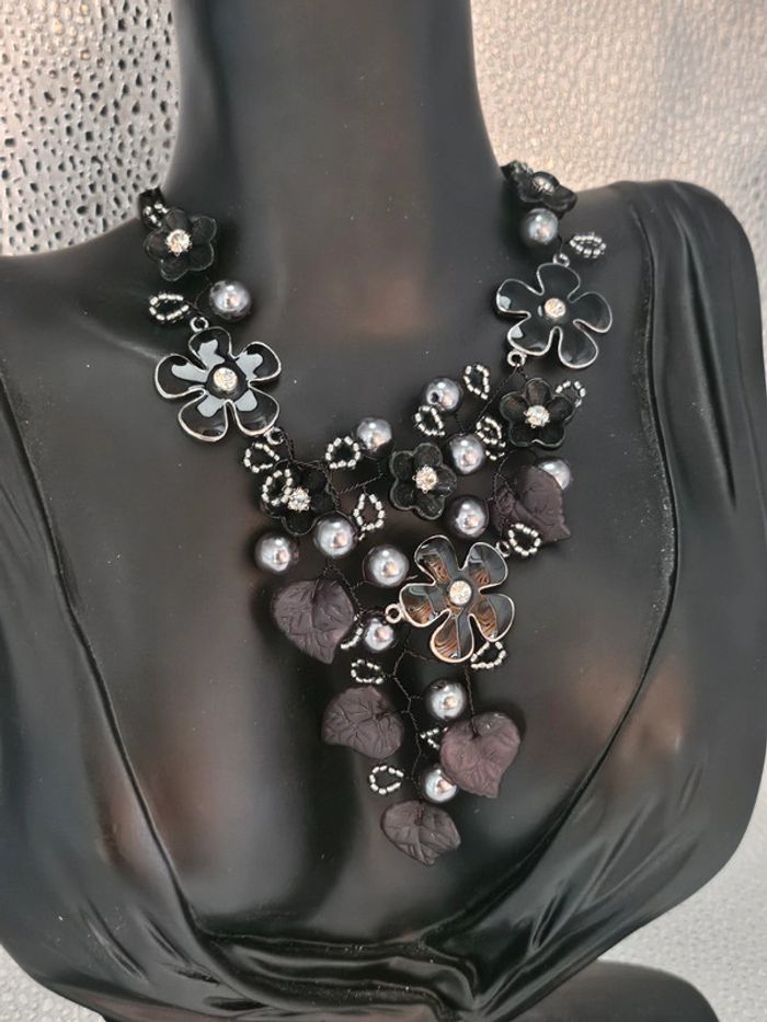 Collier avec ses fleurs, feuilles et perles, ikita en acier inoxydable - photo numéro 4