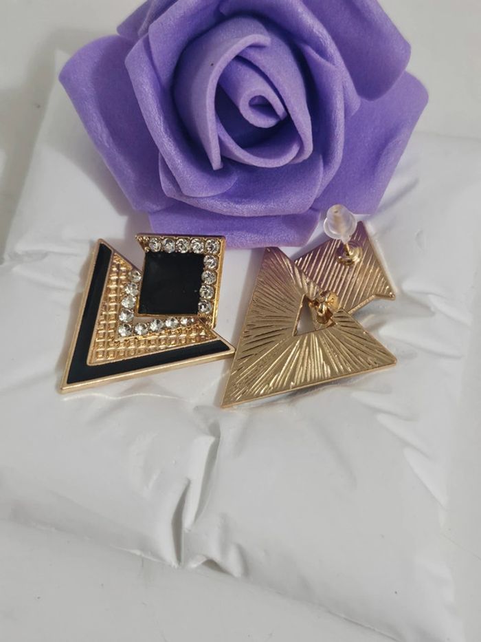 Boucles d oreilles doubles triangles avec zirconium Neuf sans étiquette, jamais portées De marque Aihhq En acier inoxydable hypoallergenique haute qualité Ne noircit pas au fil du temps Ne rouille pas Bonne résistance au passage sous l eau Longueur: 3 cm Largeur au plus large: 2.5 cm (05/05/2025*555)