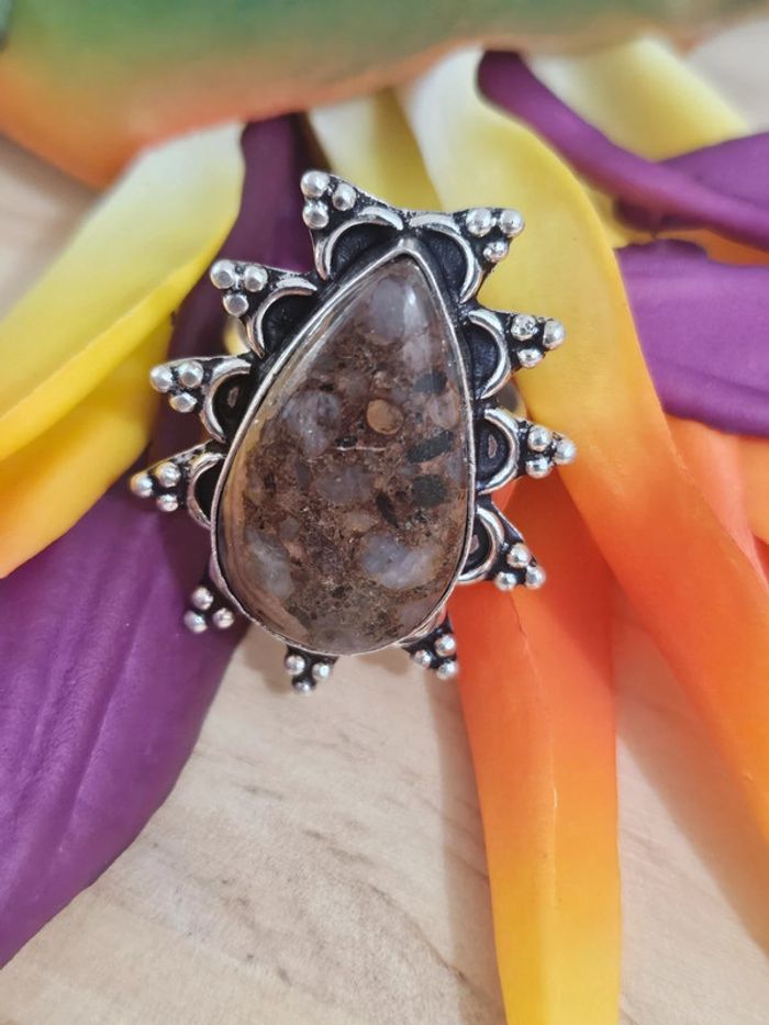 Bague texturee en argent sterling 925 avec pierre jaspe pilbara - photo numéro 1