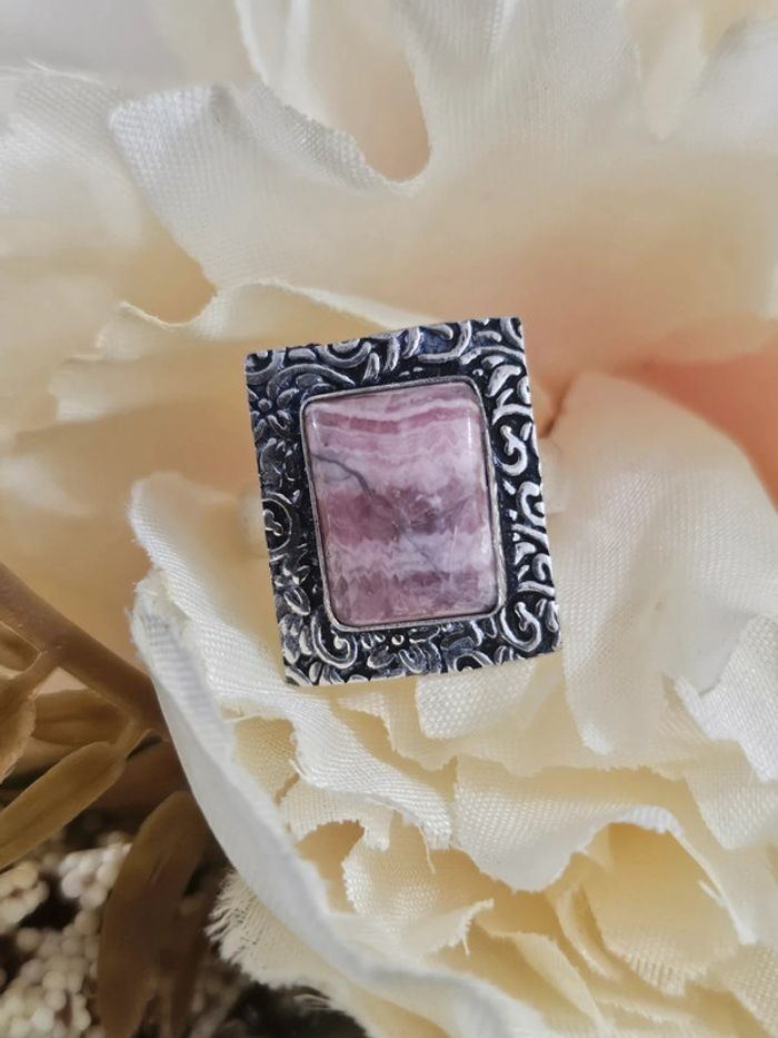 Bague texturee en argent sterling 925 avec sa pierre rhodonite et pyrite - photo numéro 1