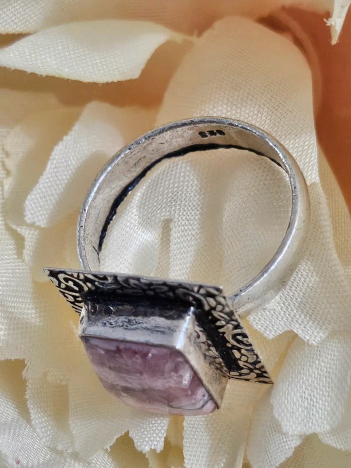 Bague texturee en argent sterling 925 avec sa pierre rhodonite et pyrite - photo numéro 4