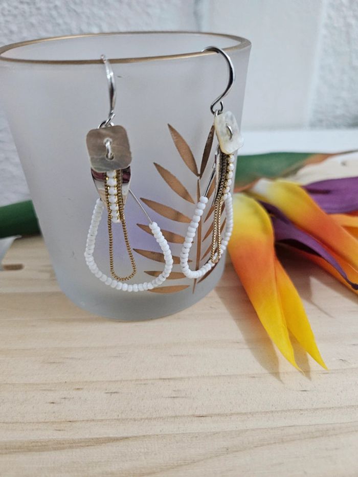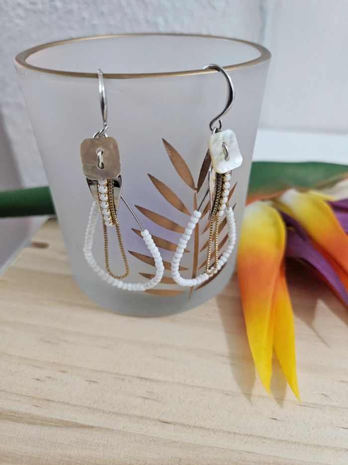 Boucles d'oreilles avec perles et chaînes Neuves sans étiquette, jamais portées De marque Ikita En acier inoxydable hypoallergenique haute qualité Ne noircit pas au fil du temps Ne rouille pas Bonne résistance au passage sous l eau Pour oreilles percées (03/05/2025*526)