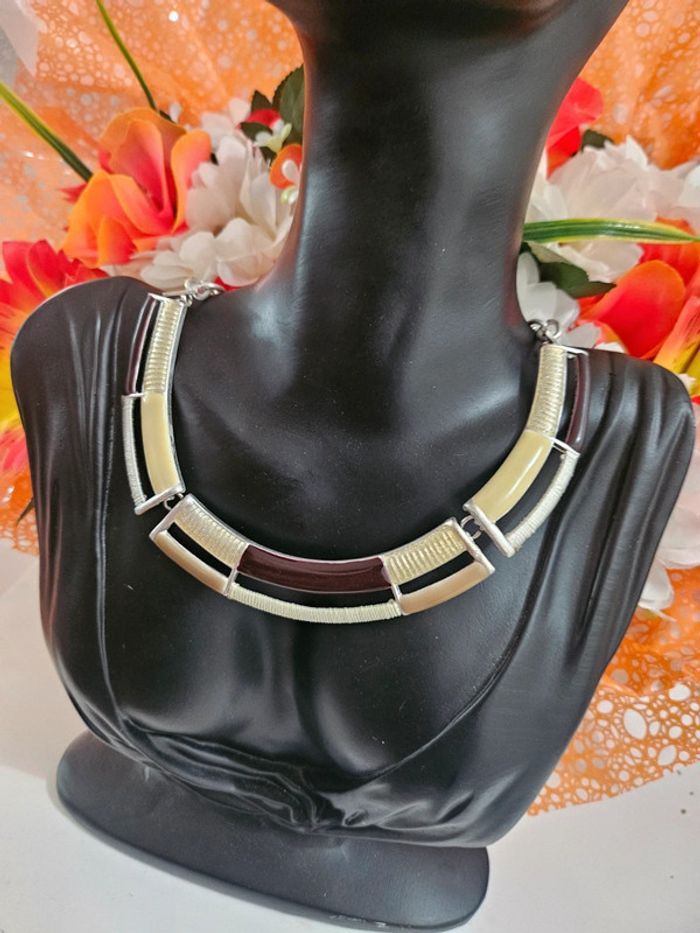 Collier doré/marron/beige Neuf sans étiquette, jamais porté De marque Ikita En acier inoxydable hypoallergenique haute qualité Ne noircit pas au fil du temps Ne rouille pas Bonne résistance au passage sous l eau Collier réglable (03/05/2025*522)
