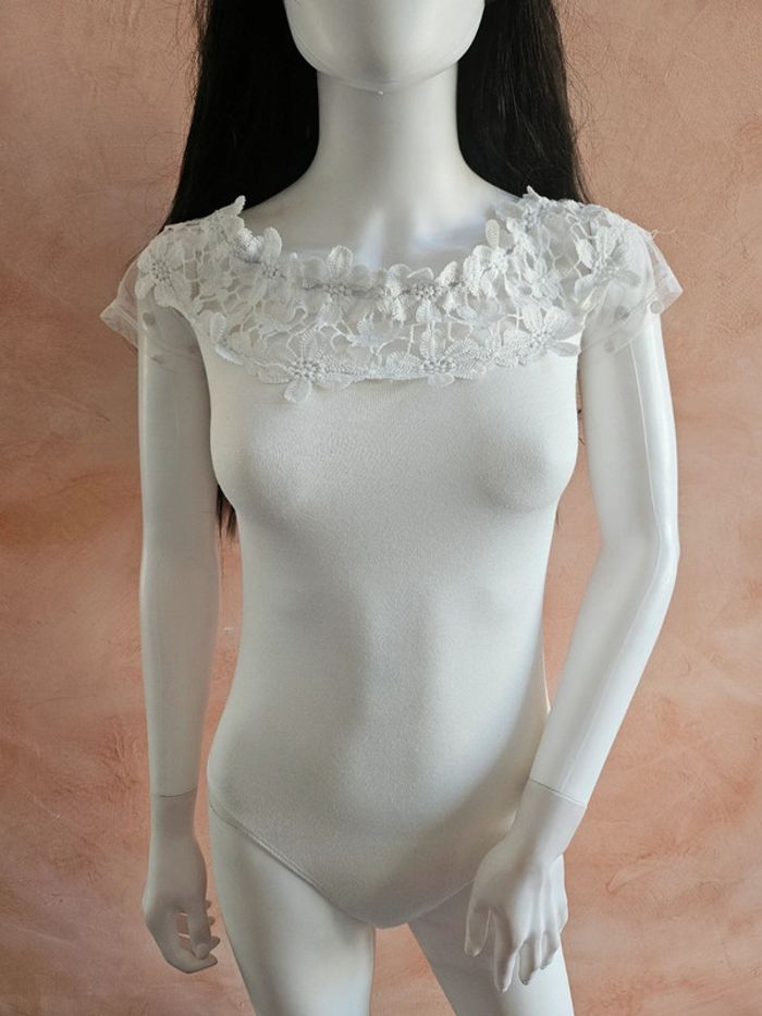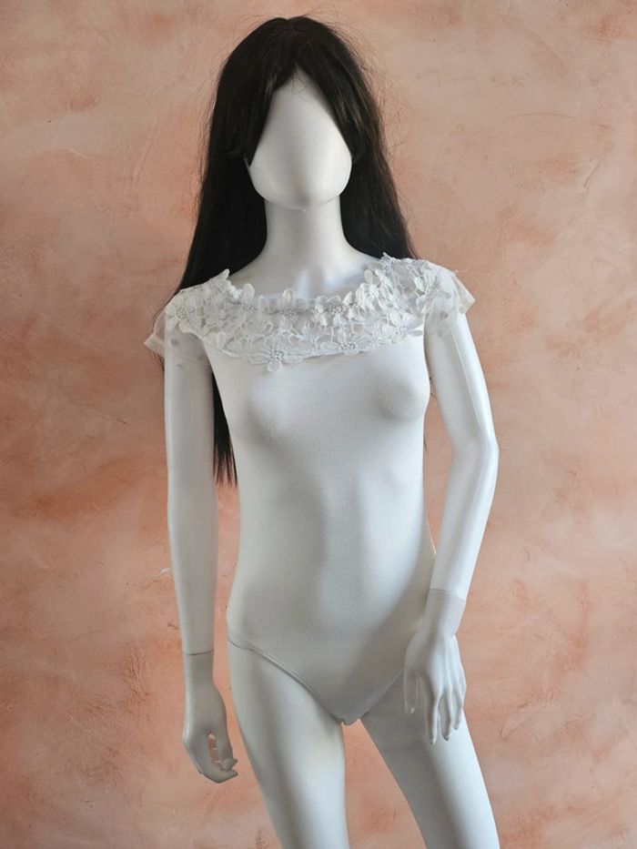 Body blanc avec dentelle crochetee et tulle - photo numéro 1