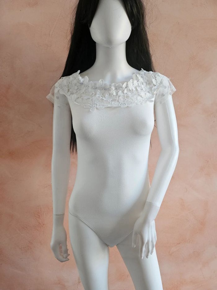 Body blanc avec dentelle crochetee et tulle Sans marque Taille 40 Très bon état Étiquette de composition coupée Aisselles à Aisselles: 34 cm Hanches: 32 cm Longueur: 67 cm (03/05/2025*517)