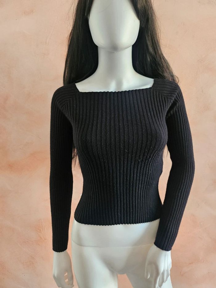 Blouse courte unie epaisse avec son col carré - photo numéro 1