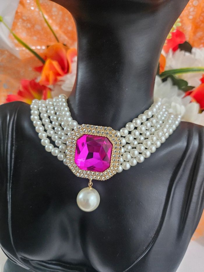 Collier avec perles d eau douce et pierre topaz fushia Neuf sans étiquette, jamais porté De marque la boutique de la pierre Attache en acier inoxydable hypoallergenique haute qualité Collier réglable (02/05/2025*509)