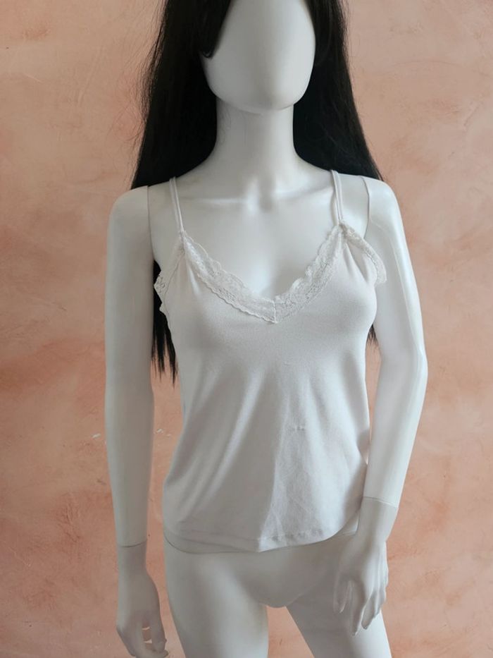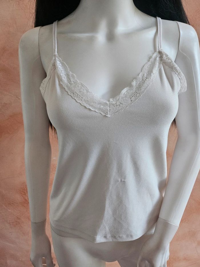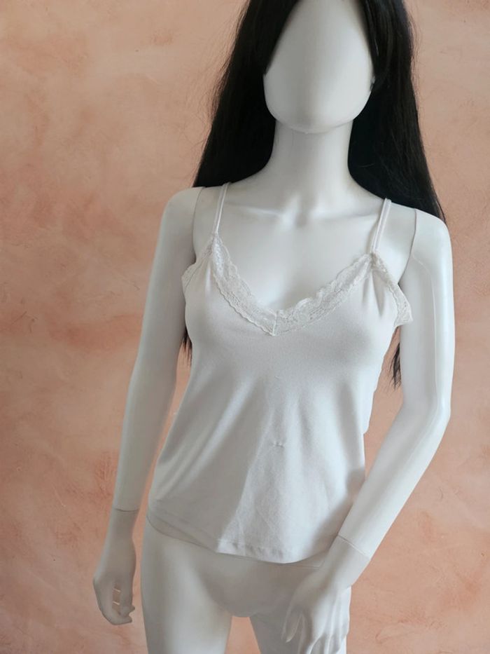 Débardeur avec col en dentelle Jennyfer Taille XXS Bon état( 1 fil tiré) Composition: Étiquette coupée Aisselles à Aisselles: 37 cm Largeur bas de taille : 40 cm Longueur: 50 cm (02/05/2025*506)