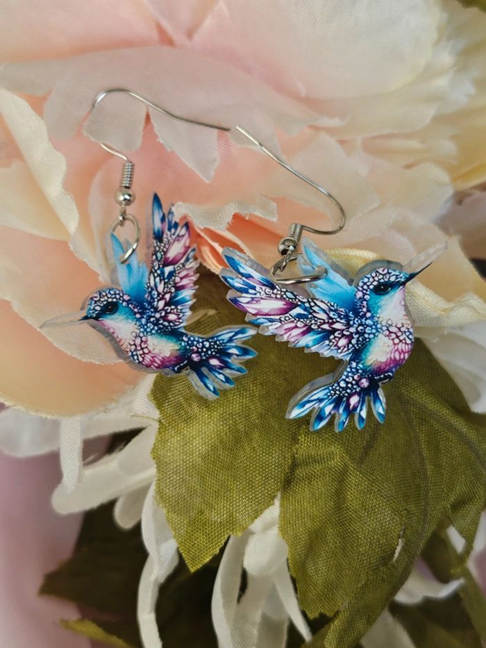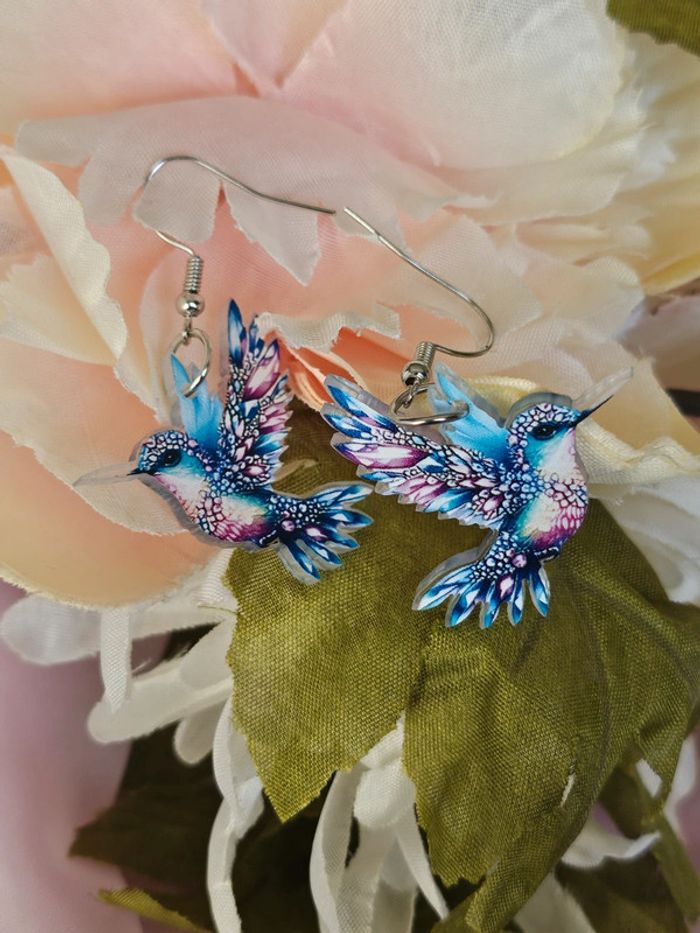 Boucles oiseaux colibri, attaches en acier inoxydable - photo numéro 1