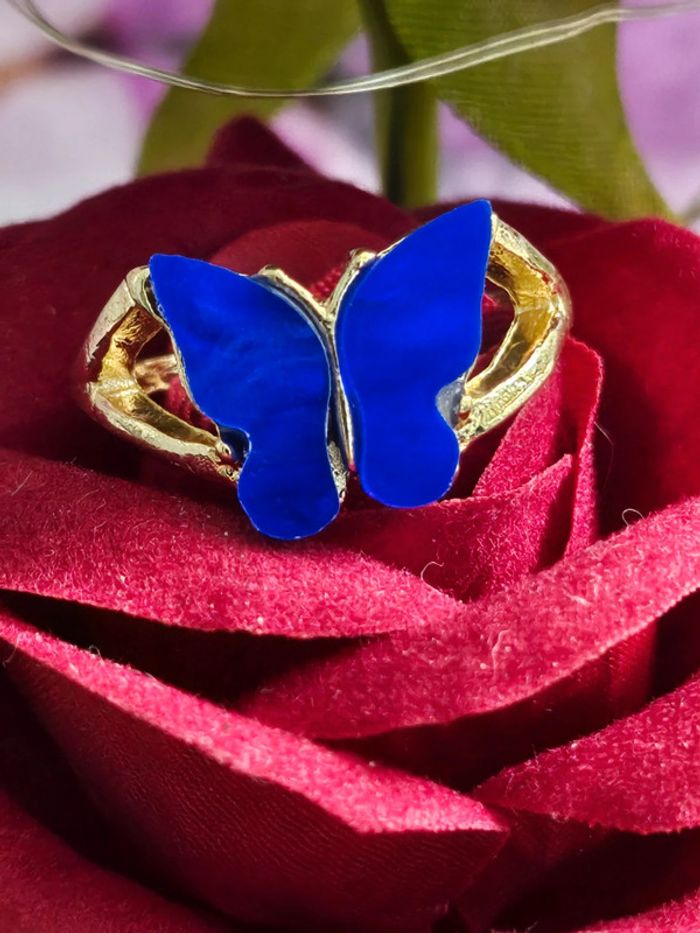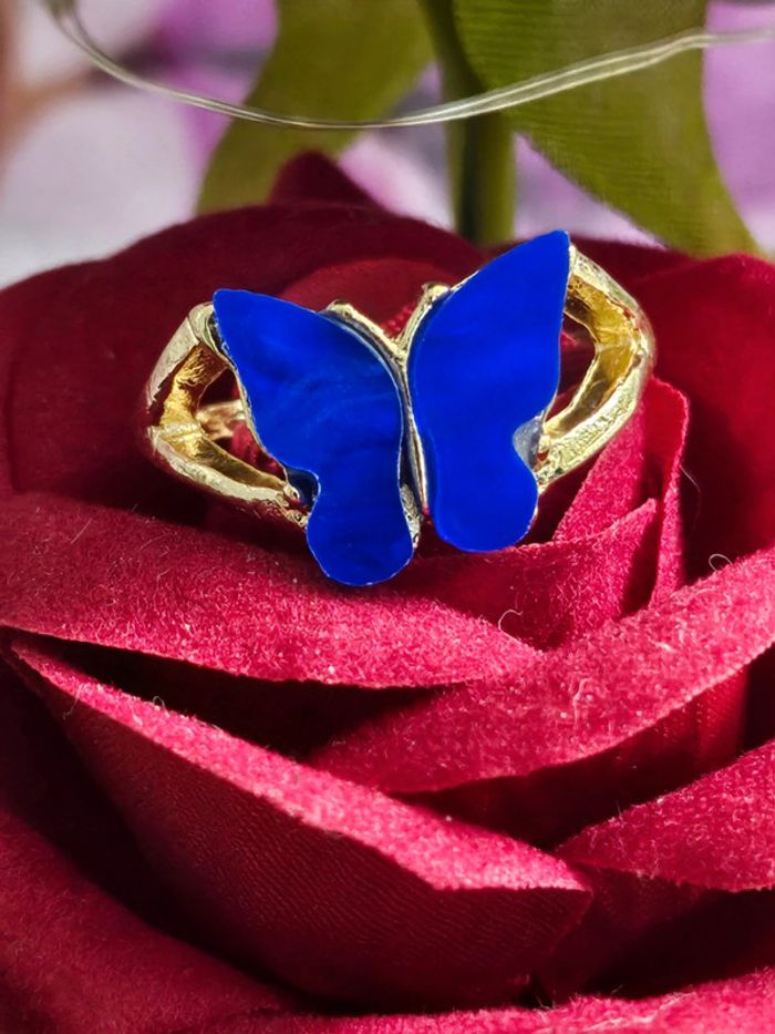 Bague avec son papillon bleu en acier inoxydable - photo numéro 1