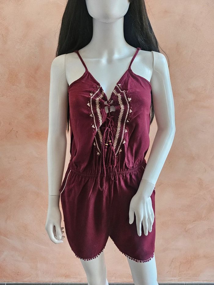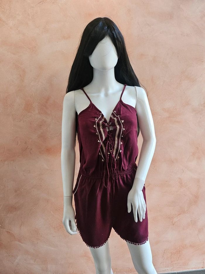 Combishort bordeaux avec cordage De marque Jennyfer S Très bon état Pas d étiquette de composition Aisselles à Aisselles : 39 cm Hanches: 43 cm Largeur bas de cuisse : 29 cm Longueur: 75 cm Élastique à la taille Bretelles réglables (01/05/2025*487)