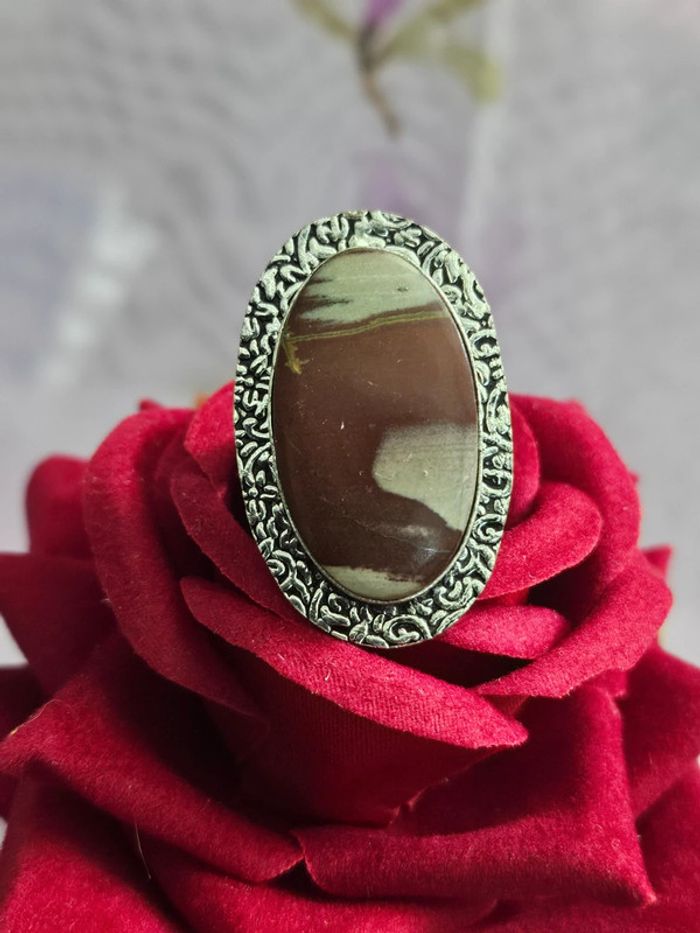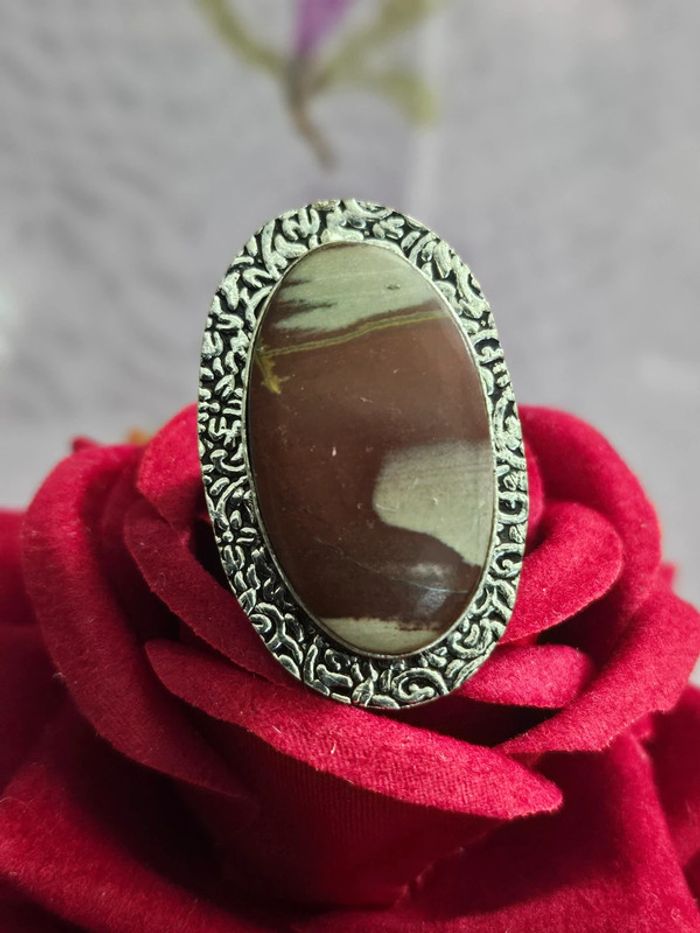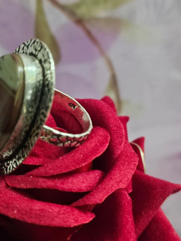 Bague avec sa plaque et son anneau texturee en argent sterling 925 et pierre noorena Neuve sans étiquette, jamais portée De marque argent Sterling 925 Pièce unique en pierre naturelle SERTIE Poinçonnée 925 Taille 59 Pour la taille bien se fier à ce qui est écrit dans le commentaire et non dans le texte pré-rempli car nous pouvons y ajouter que des tailles standard. (28/04/2025*454)