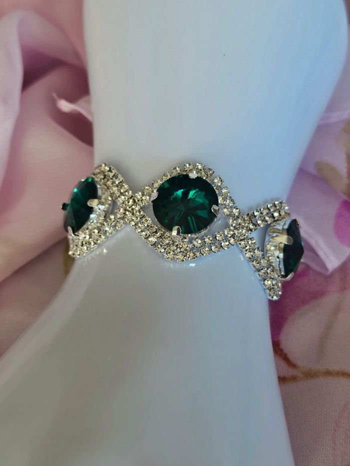 Bracelet avec zirconium et pierre topaz verte Neuf sans étiquette, jamais porté De marque Aihhq En acier inoxydable hypoallergenique haute qualité Ne noircit pas au fil du temps Ne rouille pas Bonne résistance au passage sous l eau Longueur détaché: 18 cm (01/05/2025*483)