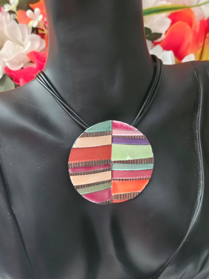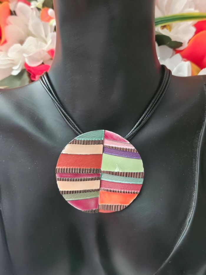 Collier cordon avec sa pastille coloree - photo numéro 1