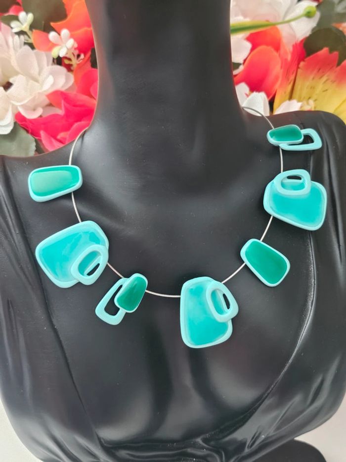 Collier avec ses formes bleues/vertes en acier inoxydable